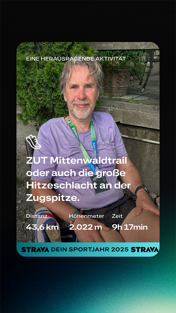 2025 war für mich jetzt nicht das herausragendste Lauf-und Sportjahr…. Weder beim UTFS noch beim ZUT-Mittenwaldtrail habe ich die gesteckten Ziele erreicht, auch wenn ich beide Rennen sehr genossen habe. Alle anderen Planungen fielen einer verletzungsbedingten, dreimonatigen Laufpause zum Opfer. Und den geplanten Silvesterlauf in Bräuningshof kann ich wegen einer Athroskopie im linken Knie auch nicht laufen. Dabei hatte ich mich so auf die Abwechslung zum Silvesterlauf des Klinikum Nürnberg gefreut.